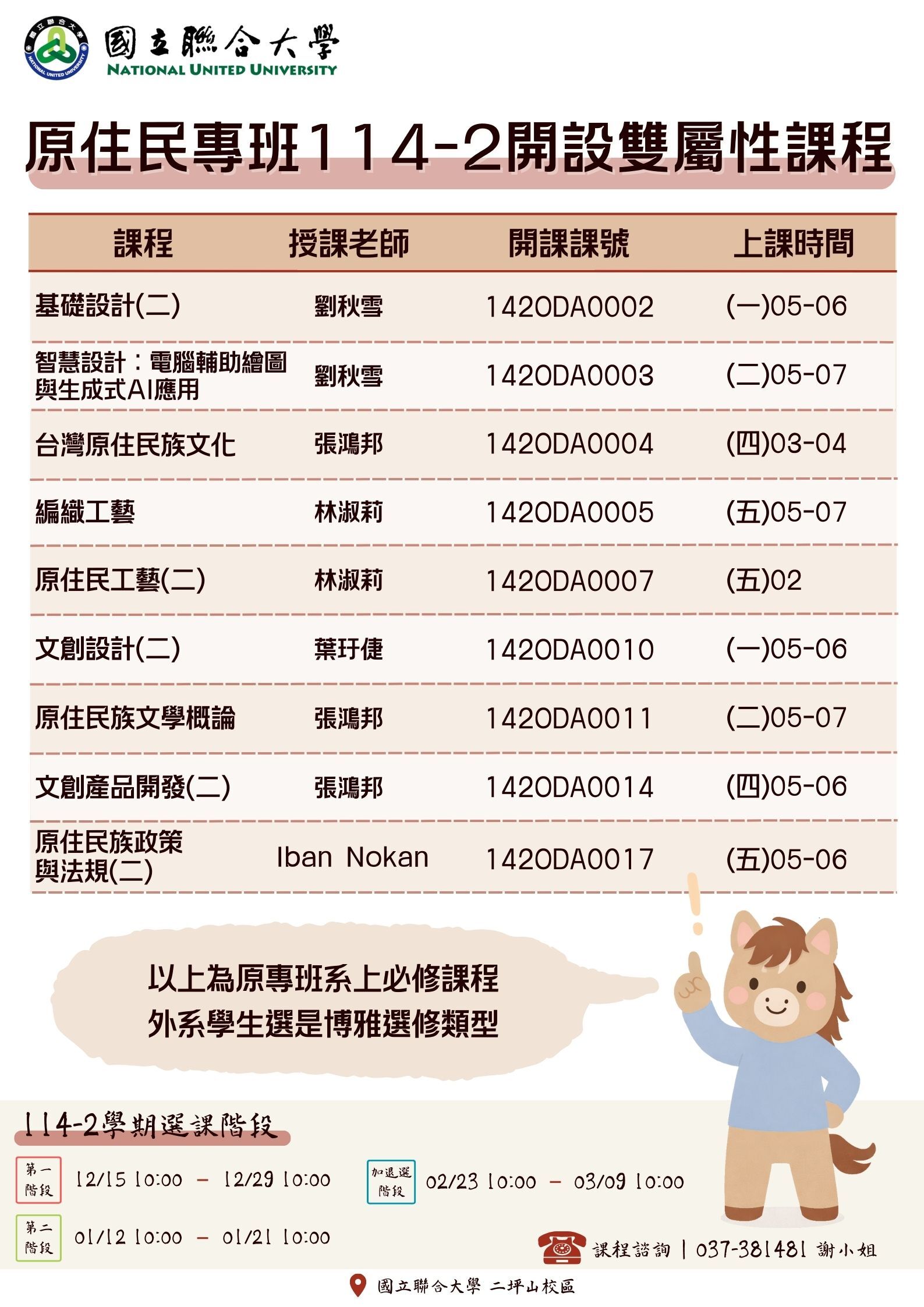 歡迎選修|日間部114學年度第2學期原住民專班「雙屬性課程」